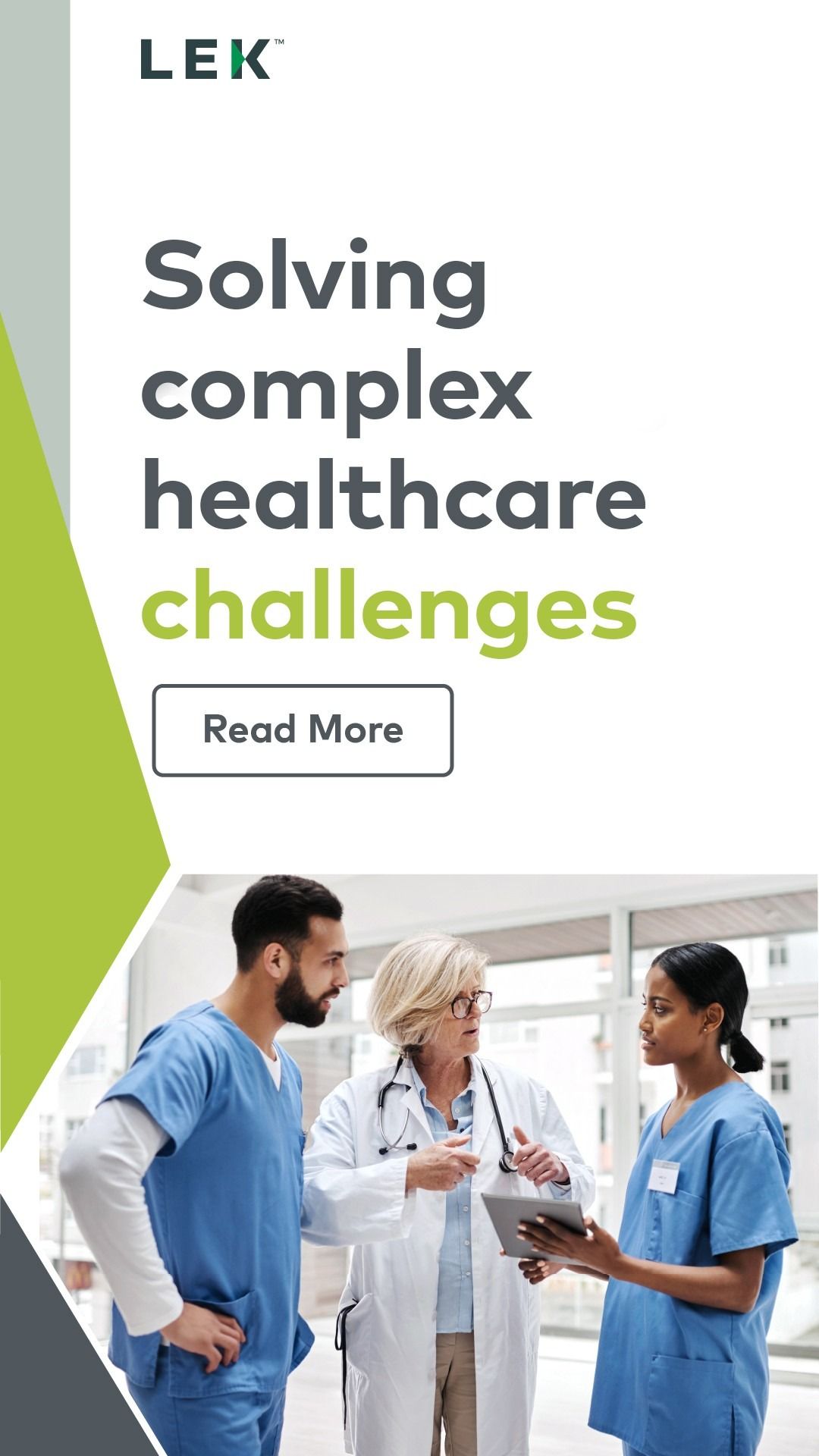 In healthcare, L.E.K. covers the breadth of the sector, from life sciences and pharmaceuticals to medtech and healthcare services.